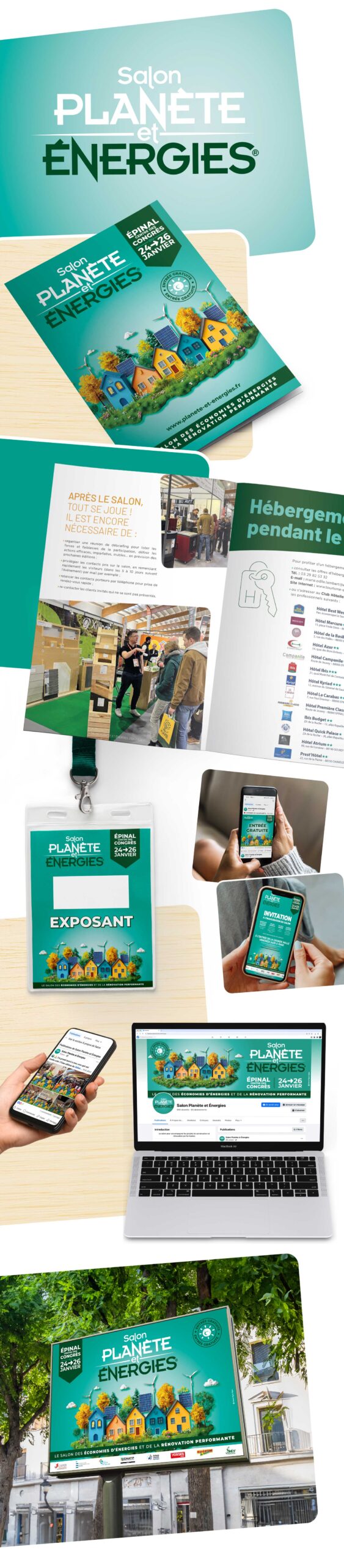 Pour la 18ᵉ édition du Salon Planète & Énergies d’Épinal, nous avons insufflé une nouvelle énergie visuelle : identité graphique complète, déclinaisons print & web, création du guide du salon et accompagnement des communications réseaux sociaux & newsletters.